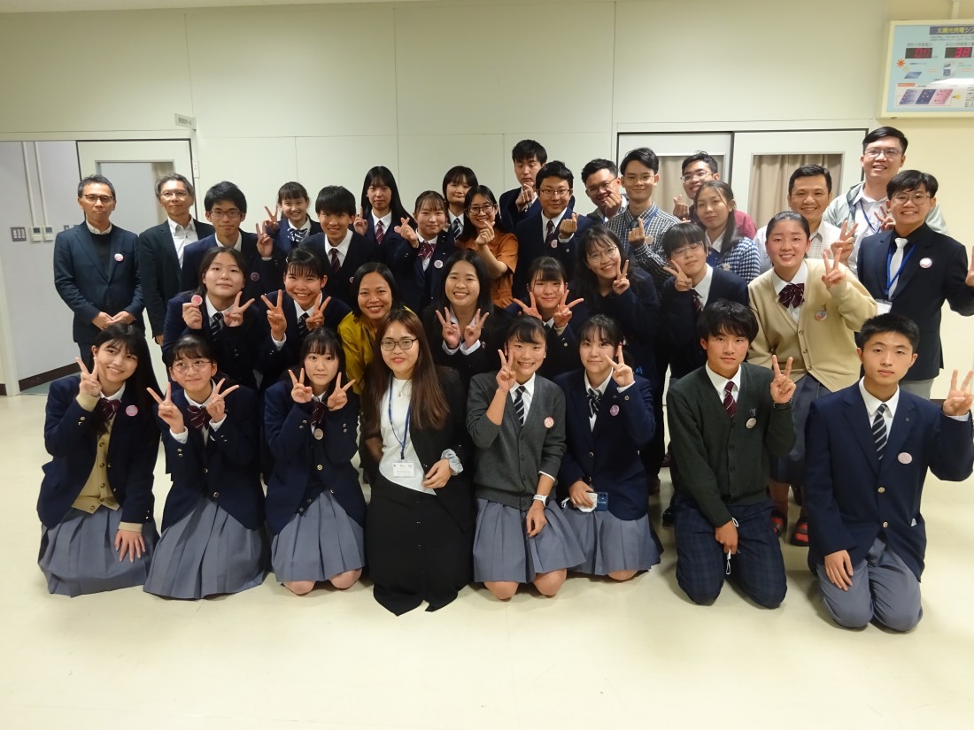 国際青少年サイエンス交流事業において、2022年11月17日~11月24日にかけて日本に滞在中のホーチミン市師範大学の大学生が、SSH指定校である本校を訪問しました。大学生のみなさんは科学コンテストに参加した経歴を持つなど、将来ベトナムの理科教育を担う優秀な若者です。日本の理科教育の現場を体験するプログラムの一環として本校を訪問したみなさんは、本校生徒が探究活動に取り組んだり、英語でのプレゼンテーションを行ったりする様子を見学しました。また、放課後には交流会が行われ、英語を用いてお互いの勉学について熱心に意見を交わし、交流を深めることができました。