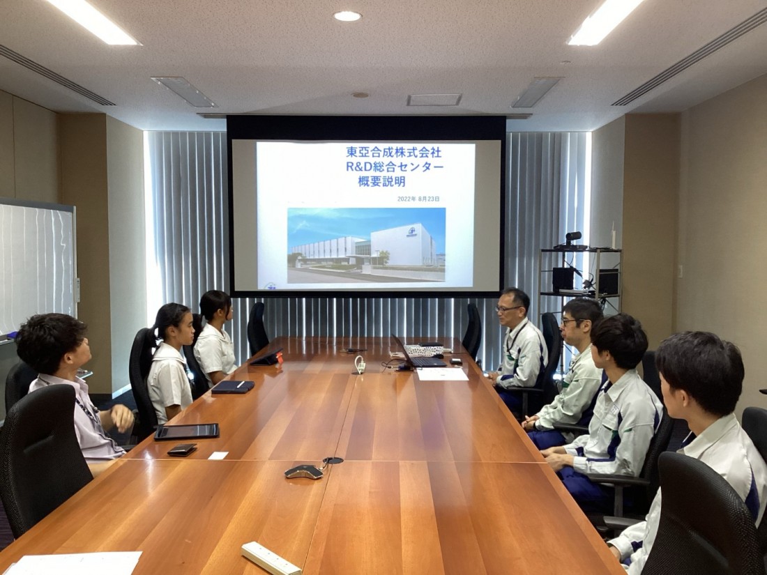 令和7年8月19日(火)、本校2年生2名が「デンプンのゲル化」と「レジンの硬化」をテーマに、化学工学会東海支部の高大連携事業の一環として東亞合成株式会社名古屋工場を訪問しました。これは「探究Ⅱ」で取り組んでいる研究を、研究員のご指導のもとで実施することを目的としたもので、昨年度に続き今回が2回目の訪問となります。
