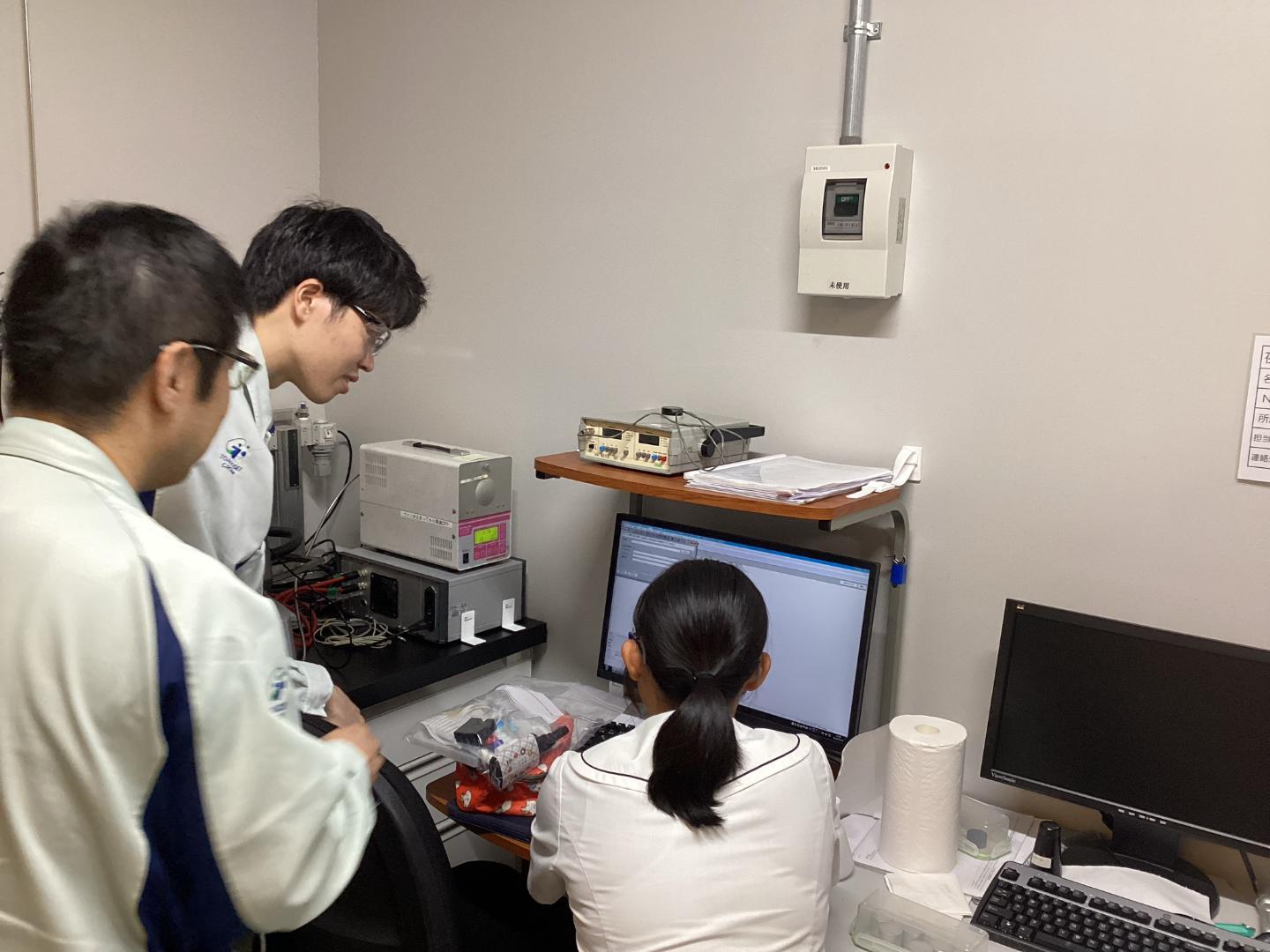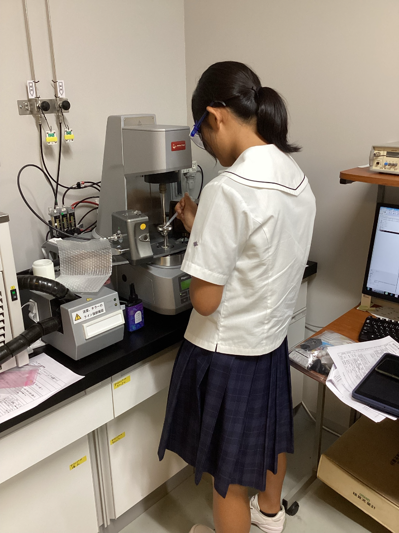 *実験では、サンプルの温度・乾燥状態・使用する容器による影響など、正確な数値を得るために注意すべき点の多さに驚きました。職員の方々のご説明やアドバイスはとても丁寧でわかりやすく、今後の研究の参考になりました。貴重な体験をさせていただき、本当にありがとうございました。