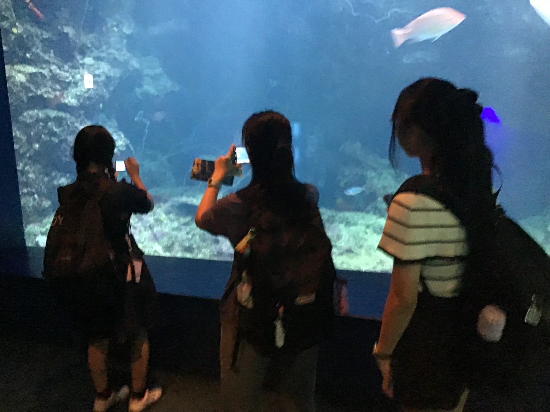 ・はじめの水族館の方々のお話では水族館の獣医の不足や、水族館での仕事に加えて、ジンベエザメの研究の奥深さも教えていただくことができました。また、水族館では、午前中のシュノーケリングでみた生き物たちを見つけることができ、よく見るとこんな特徴もあったのだなと沖縄の生き物への理解を深めることができました。