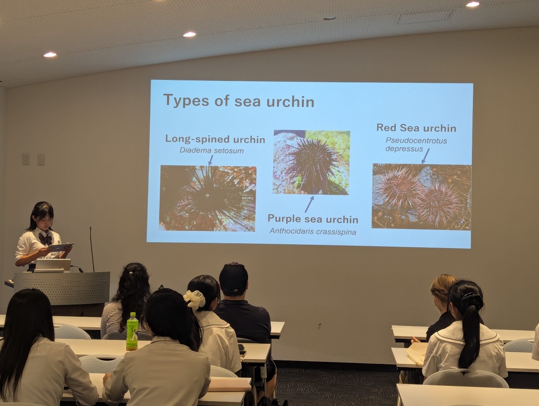 午後、本校生徒(4グループ)がプレゼンテーションを行い、OISTで学ぶ学生にも聴講・講評していただきました。発表・質疑応答すべてを英語で行い、普段は経験できない大変貴重な機会となりました。