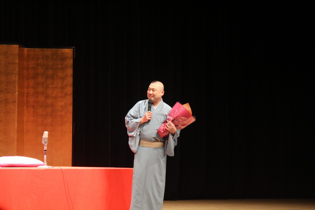 全ての演目が終了した後、生徒会長から花束を贈呈し、感謝の意を伝えました。桂宮治さんからは感謝を大切にすること、あきらめずに挑戦することなど、高校生に向けてメッセージもいただきました。