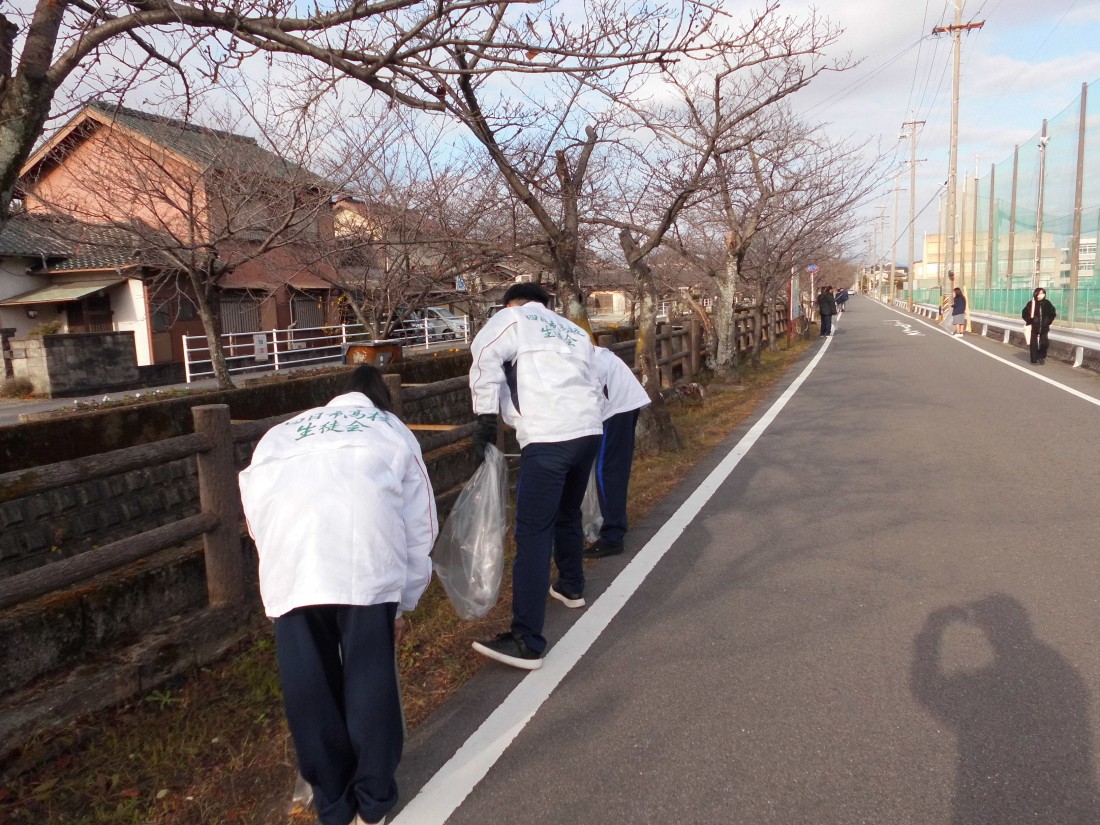2年生の各クラスの美化委員と生徒会執行部の生徒が、学校周辺の清掃活動を行いました。