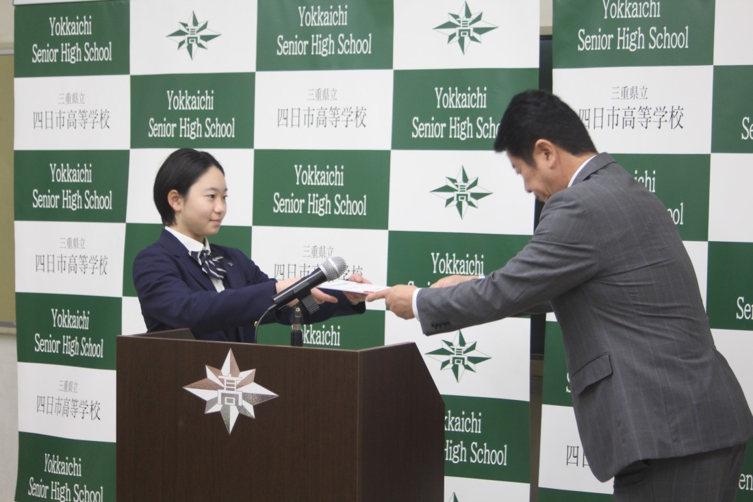 最後に校長先生や生徒支援部長より訓話があり、校長先生からは高い目標を持ち続けること、感謝の気持ちを大事にすることなど、誇りを持ちながらも謙虚な姿勢を持ち続けてほしいというお話がありました。