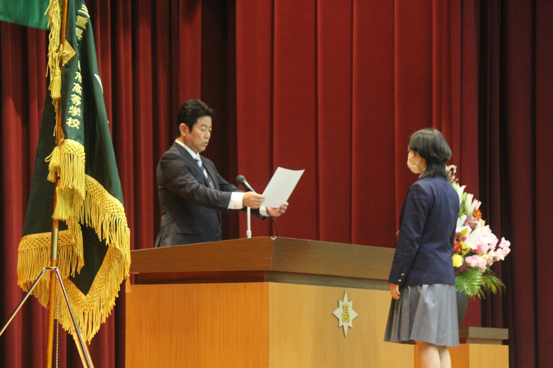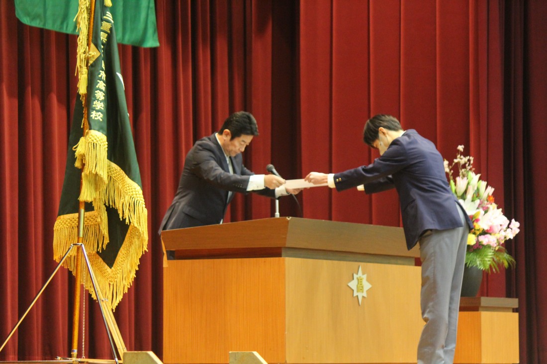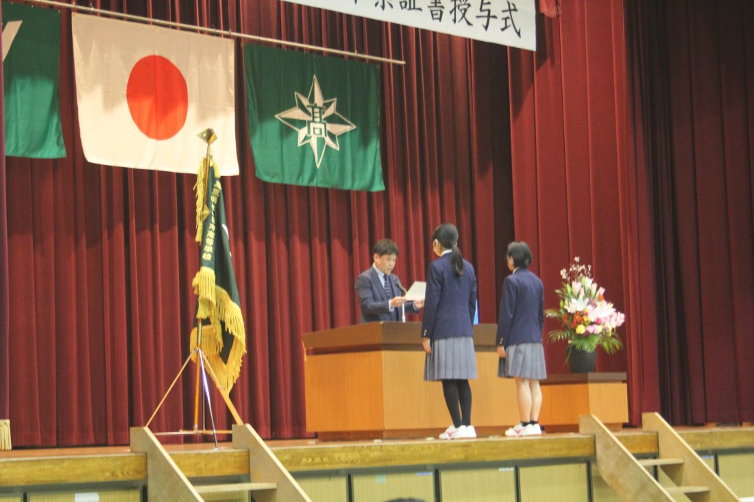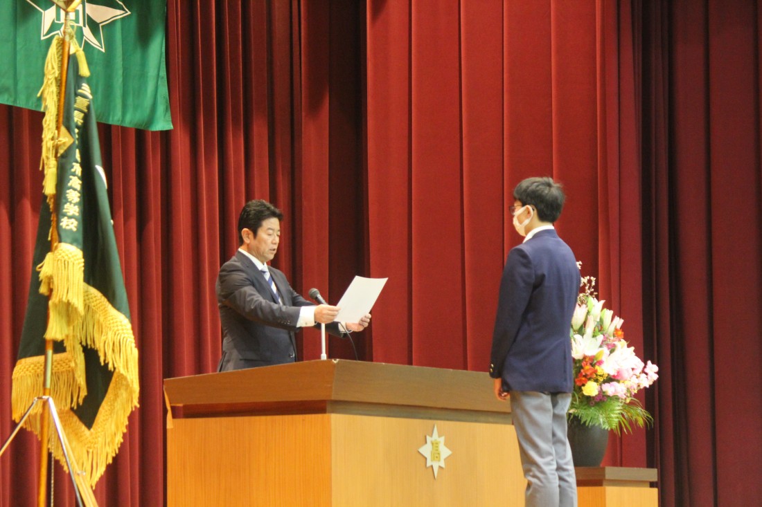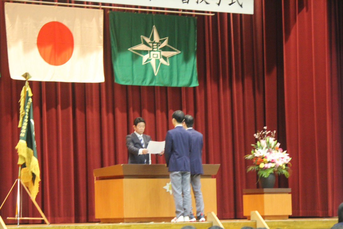 本賞は、在学中に全国規模の大会において活躍した生徒に贈られる賞です。今年度は放送部、空手道、SSH科学部、SSH生物部、全国高校生金融クイズ選手権の7名の生徒に贈られました。