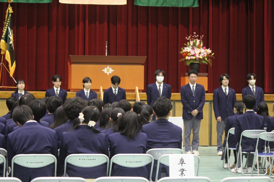 記念品が贈呈され、在校生代表、卒業生代表より挨拶がありました。