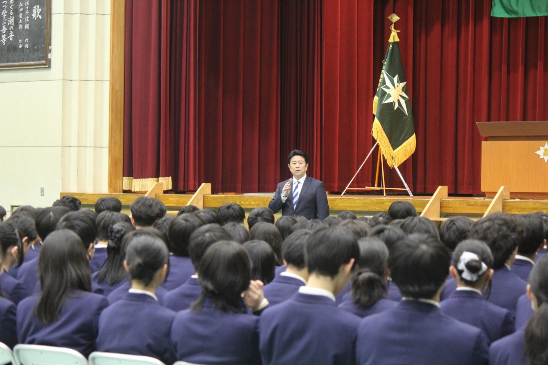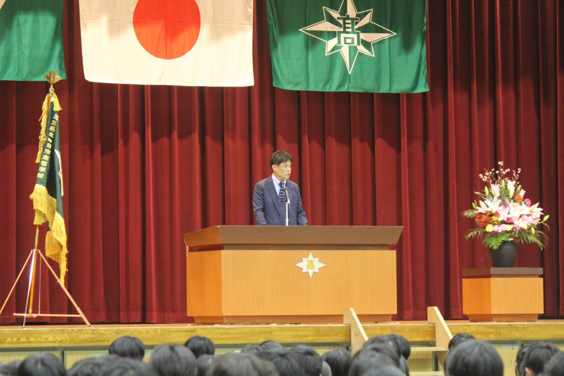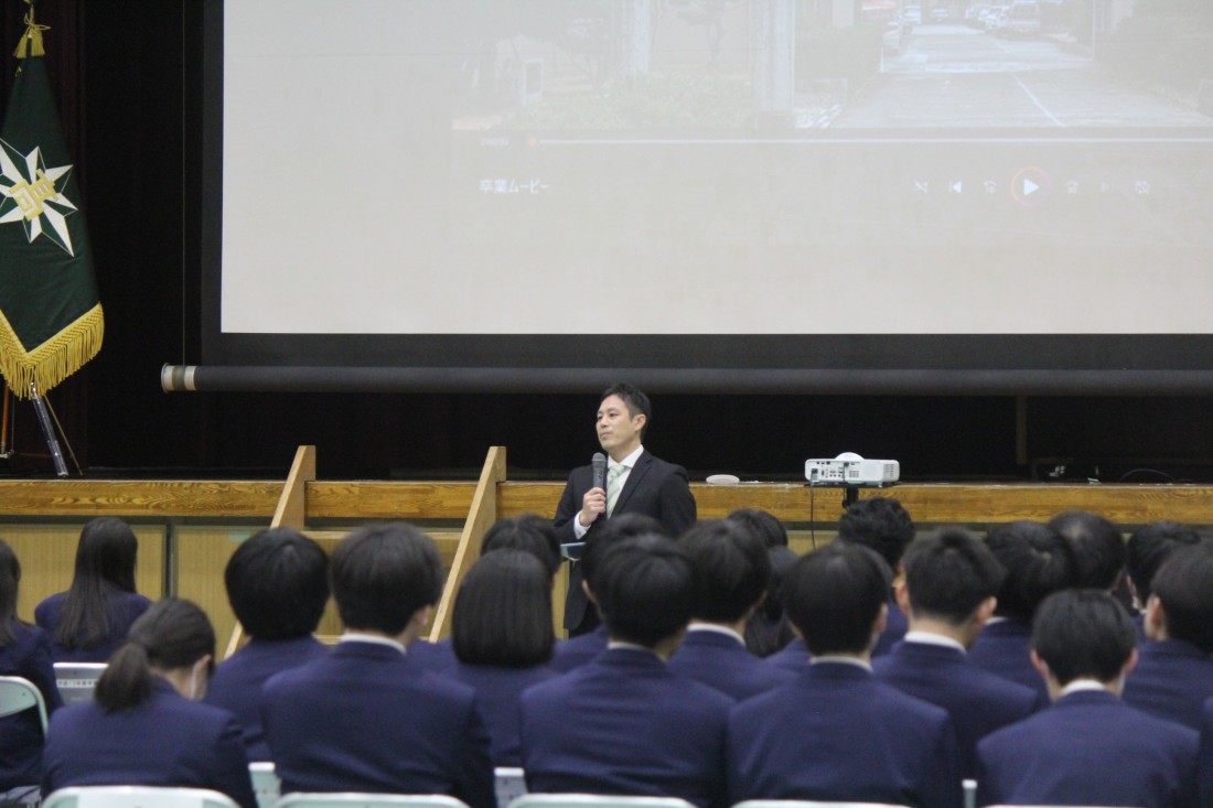 贈呈いただいた住友電装株式会社人材開発部部長、神口様よりご挨拶と卒業を控えた3年生へのお祝いの言葉をいただきました。