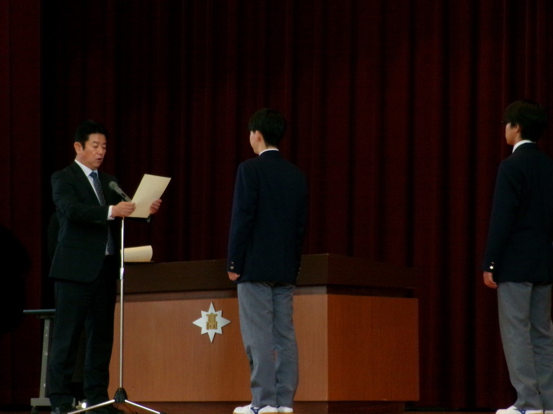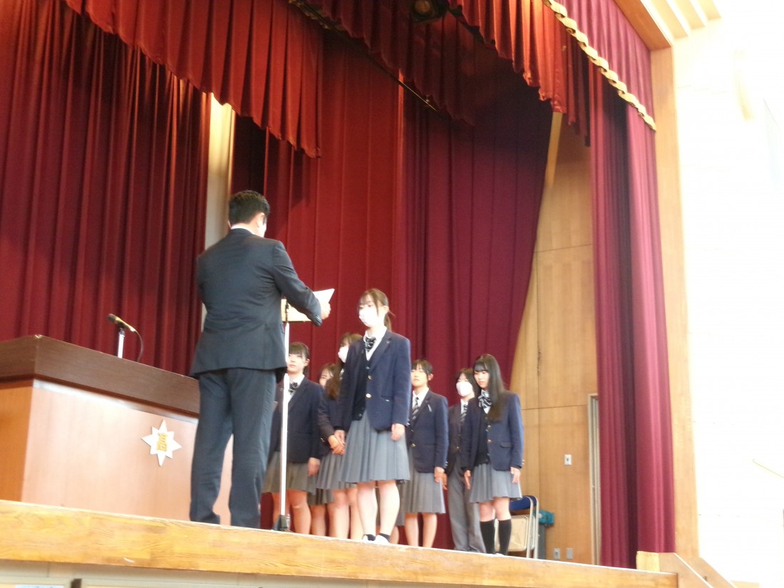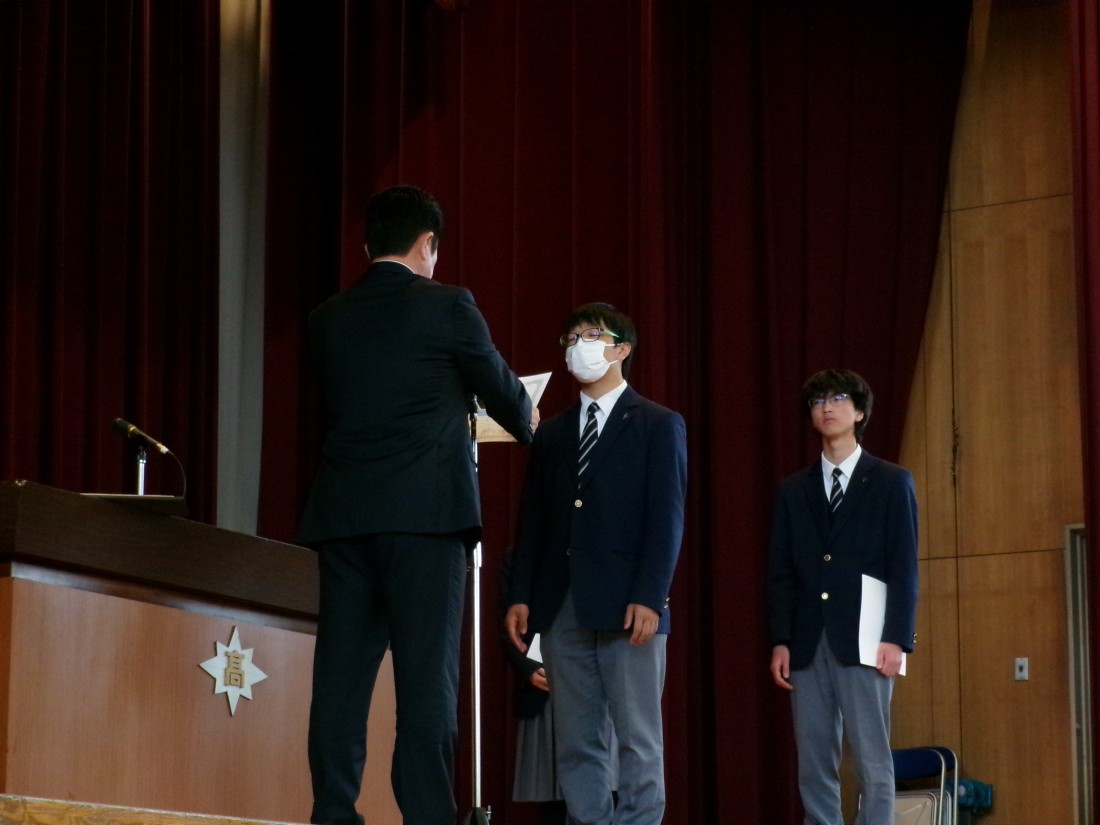 表彰式では、バドミントン部、ハンドボール部、吹奏楽部、SSH生物部、SSH電氣部、その他SSH関連等の表彰を行いました。