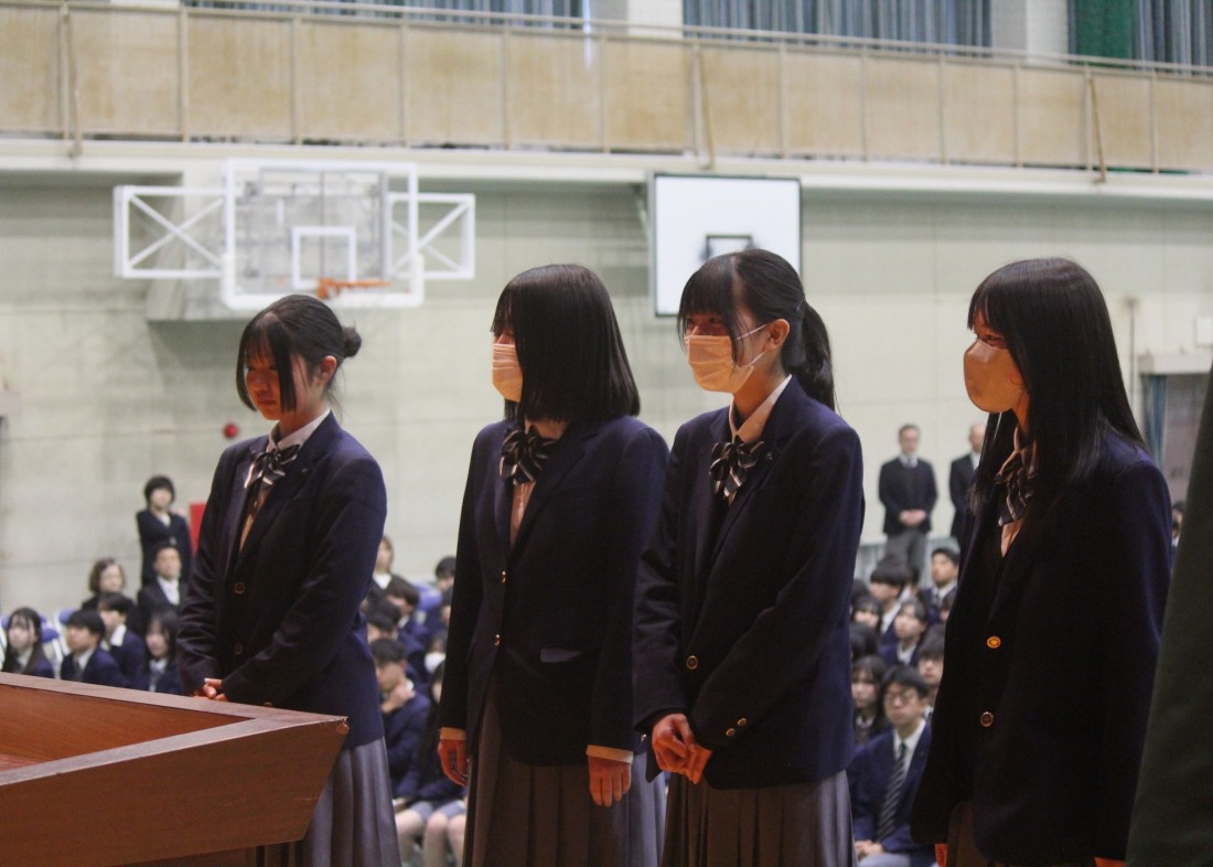 始業式では山北正也校長と生徒支援部主任より年度始めにあたっての訓話がありました。
