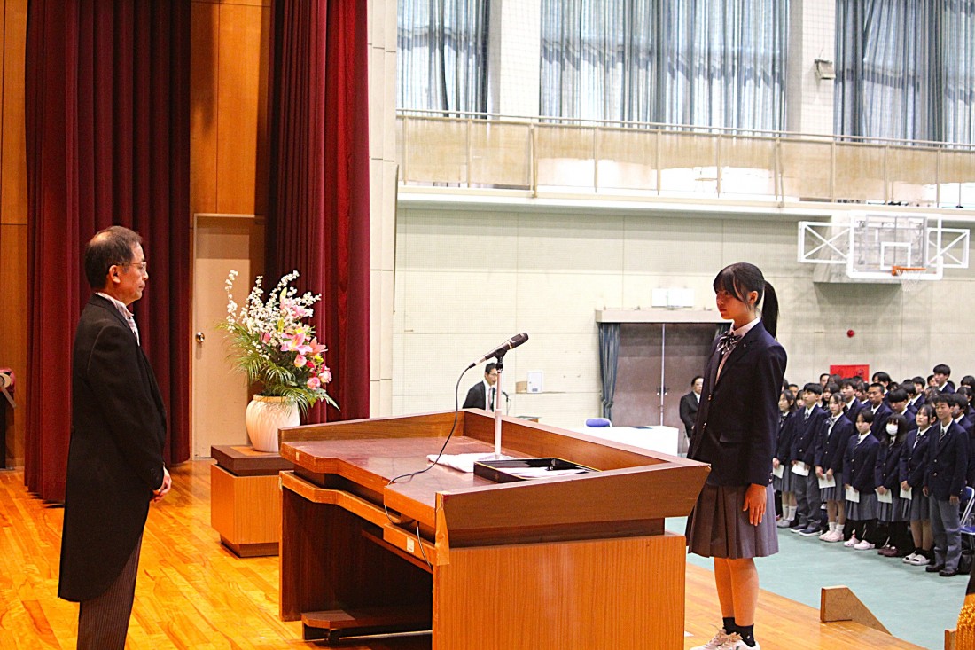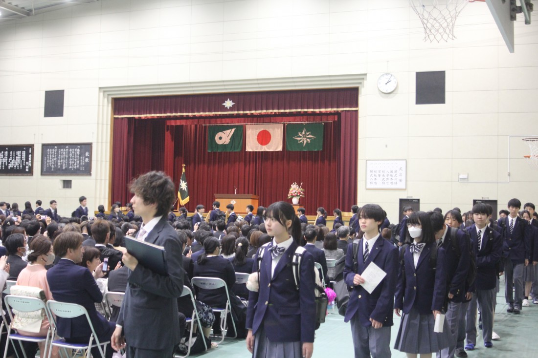 吹奏楽部、音楽部によって応援歌『希望の門』の披露、入学式に続けて担任団紹介がされました